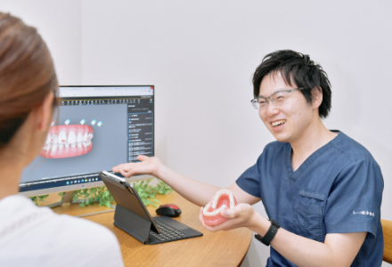 初診相談では口腔内環境を確認させていただき、 治療期間と各治療方法のメリット・ デメリットをご説明いたします。