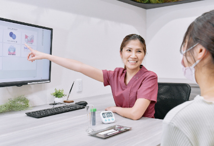 まずはカウンセラーが問診表をもとにお口の状況、お悩みをお聞かせいただきます。今回の治療において不安なことや、今後の治療において当院へのご要望がございましたら、お気軽にお伝えください。